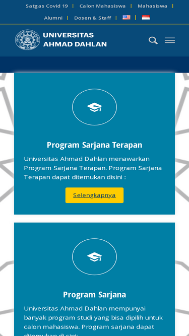 84%Mari bergabung dengan UAD sekarang juga untuk menggapai cita-citamu. Universitas Ahmad Dahlan merupakan perguruan tinggi Muhammadiyah pertama di Yogyakarta