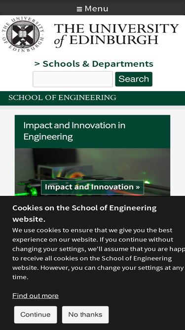 82%Welcome to the School of Engineering at the University of Edinburgh. Our vision is to advance and transmit the knowledge base of engineering to meet society’s aspirations, creating and engineering the answers to global problems.