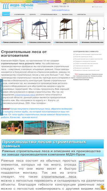 100%Большой выбор строительных лесов разного вида от компании Производителя МДН-Пром в Калуге и Калужской области.