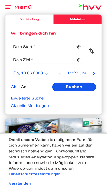 98%Mit dem ÖPNV unterwegs in Hamburg und Umgebung - Fahrplanauskunft und Fahrkarten für Bus, Bahn und Fähre.