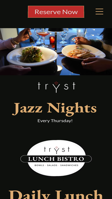 65%Join us for lunch at Tryst, focused on healthy dishes that will give you energy for the rest of your day. Lunch will be prepared for FAST midday service, while staying true to our healthy, scratch kitchen promise.
