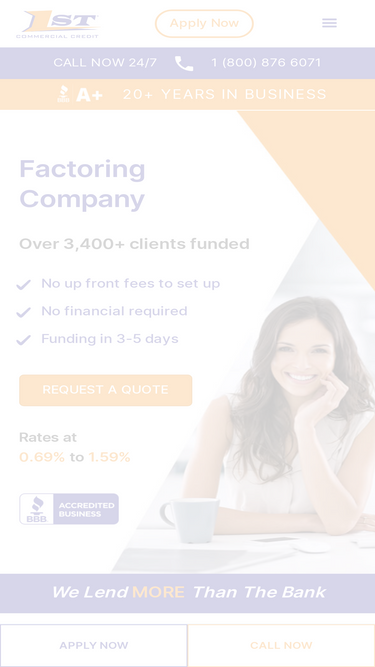 86%1st Commercial Credit is a factoring company that provides invoice factoring, purchase order financing, and trade payable finance in the USA.
