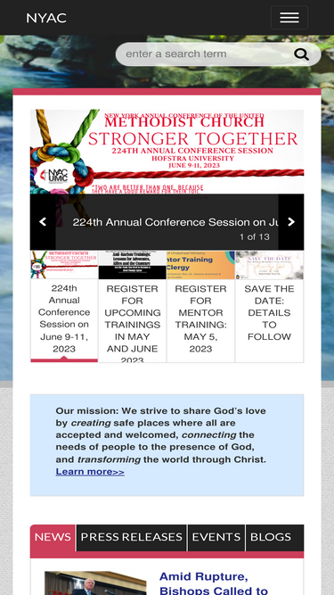 98%The Greater New Jersey Conference of the United Methodist Church (GNJ) is the regional body and central office for professional staff and ministry for the more than 530 congregations in New Jersey and parts of New York and Pennsylvania. There are more than 50,000 people who worship with us each week. GNJ is one of 57 annual conferences in the United States and 76 additional annual conferences internationally. There are more than 12 million United Methodists throughout the world.