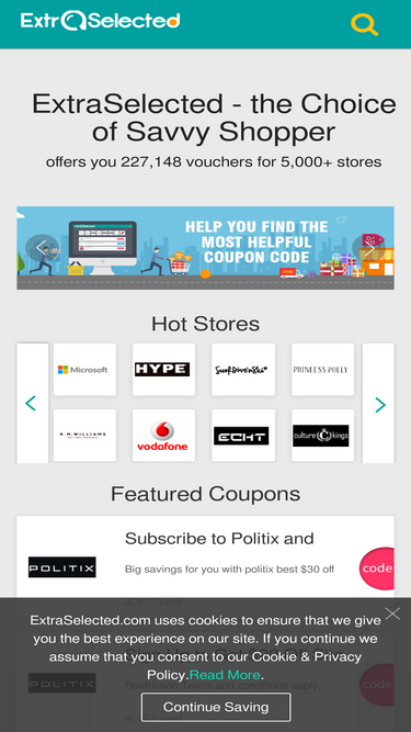 100%extraselected is your one-stop online source for coupons & deals. you can easily find free online vouchers, promo codes, discount codes for thousands of online stores.get verified coupons daily.