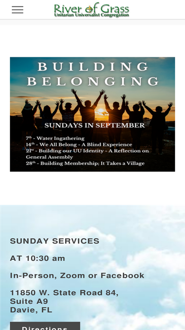 100%the river of grass unitarian universalist congregation is a community of people dedicated to helping each other and the world in which we live. we are committed to providing a sanctuary in western broward county where people can worship in an atmosphere o