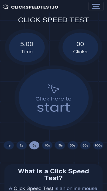 83%Usually, calculating mouse clicks is referred to as 'CPS TEST' (Clicks Per Second test). Our website offers many varieties by which the user can test his mouse clicking speed.