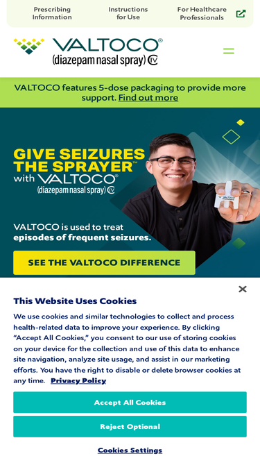 VALTOCO is a prescription medicine used for short-term treatment of seizure clusters (also known as “episodes of frequent seizure activity” or “acute repetitive seizures”) that are different from a person’s normal seizure pattern in people 2 years of age and older. See Prescribing Information and Medication Guide.