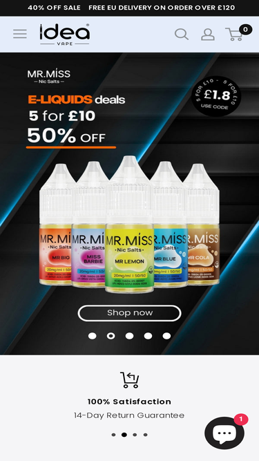 100%Idea Vape offers the wide range of vape kits, vape coils, vape pods, e-liquids and nic pouches. Shop for the premium brands: SMOK, Vozol, OXVA, Innokin, RELX, ELF Bar, Elux, JUUL, Vampire, IVG, Elux, VUSE, Hayati...