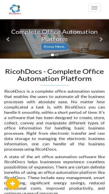 76%ricohdocs - complete office automation platform and document management system (dms) is complete suite of features to help manage your documents in organized way at minimal cost. to get free demo call toll free – 1800-3010-3363