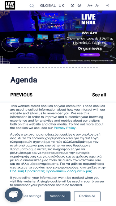 81%Το Livemedia είναι μια παγκόσμια πλατφόρμα υβριδικών και ψηφιακών εκδηλώσεων, εξειδικευμένη στη ζωντανή μετάδοση, την καταγραφή και την προβολή συνεδρίων, σεμιναρίων και webinars. Με τεχνολογική υπεροχή και δημοσιογραφική εμπειρία, προσφέρει ολοκληρωμένες λύσεις για επαγγελματικούς φορείς, οργανισμούς και εκπαιδευτικά ιδρύματα.