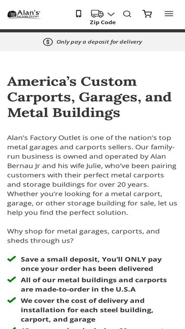 81%Shop metal garages and metal carports from Alan's Factory Outlet. Wide selection of various metal building and free installation with each order.