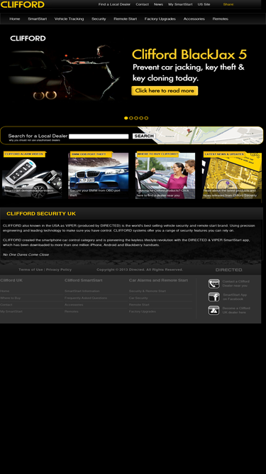 78%clifford is the most recognised name in vehicle security & remote start systems. clifford products include car alarms, remote starters, smartstart, interface modules, transmitters and remotes. if you are in the market for a car alarm or remote starter there is no better brand then clifford. clifford's car alarms and remote starters lead the industry. even start your car from your iphone or ipod touch with smartstart app.
