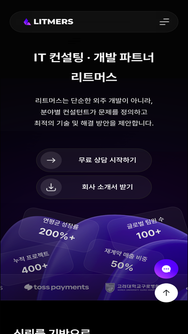76%리트머스는 기업 규모와 도메인에 무관하게 결과로 증명하는 IT 컨설팅 파트너입니다. 업계 최고 수준 전문가들이 합리적인 비용으로 신뢰할 수 있는 외주개발, 노코드 에이전시, 팀구독 솔루션을 제공합니다.