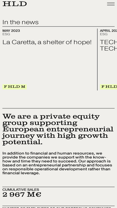 38%HLD is a European investment group with permanent capital. We work with executives to build companies that are leaders in their sectors.
