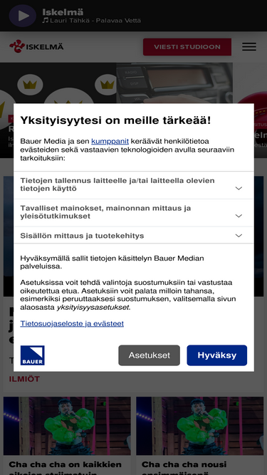 98%Iskelmä tuo aurinkoa suomalaisen arkeen. Parhaita kotimaisia soittavan suosikkikanavan rento henki, hauskat juontajat ja lukuisat tapahtumat ovat maankuuluja.