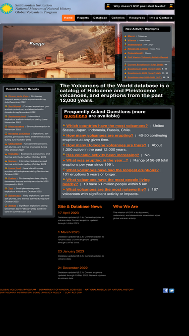 100%Answers to commonly asked questions about Holocene volcanoes and their eruptions based on data from Volcanoes of the World