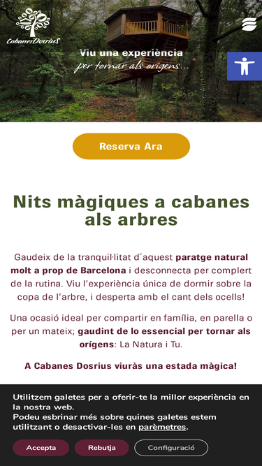 Vive la experiencia única de dormir sobre la copa de un árbol en Cabanes Dosrius y disfruta de su Centro de Salud y Bienestar, Espai Crea rodeado de naturaleza.