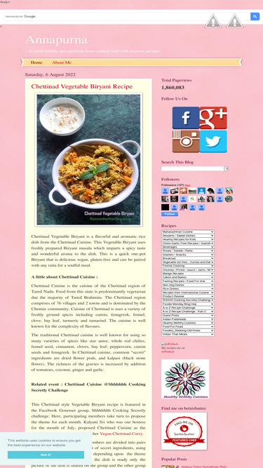 Die weiteren fünf Wettbewerber in der Top-10-Liste sind poonambachhav.blogspot.com, masterchefmom.blogspot.com, yasmeenskitchendiary.com, ashleighcooks.com.au und cookinglola.com.
