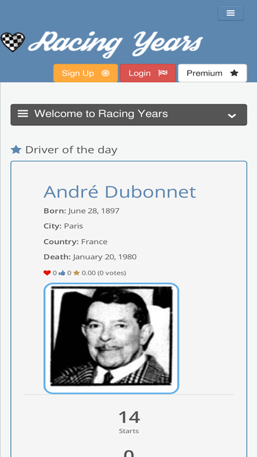 79%racing years is a complete racing database with results of the most important championships since the beginnings of the motor racing,where you can share your favorites drivers,cars and teams with your friends. at the same time you can follow and rate your favorite drivers and review any race