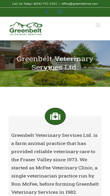 100%We'd Love to Hear From You, Get In Touch With Us! Greenbelt Veterinary Services Ltd. 8451 Harvard Place Chilliwack, BC V2P 7Z5 CANADA Phone: (604) 792-1501 Fax: (604) 792-1173 Email: office@greenbeltvet.com Website: www.greenbeltvet.com Office Hours: Monday – Friday: 7am – 5pm Saturday, Sunday and Holidays: closed On-call veterinarian can be reached 24 hours