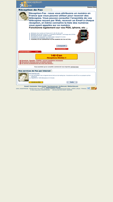 99%r�ception illimit�e de fax. gestion de la r�ception de vos fax par le biais d'internet. r�ception de vos fax sur un ou plusieurs emails. stockage de vos fax � l'ann�e. abonnement annuel ou r�ception � l'unit�. fini les lignes occup�es.