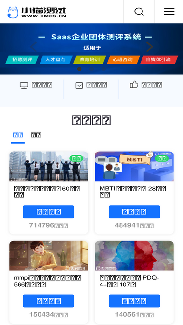 92%小猫测试,专业严肃的心理测评系统,致力于提供智商智力测试,情商测试,职业性格测试(mbti职业性格测试,霍兰德职业兴趣测试,九型人格测试),人格测试(大五人格,青年人格等),各类人格障碍测试pdq-4+,心理健康测试(自卑,内向,社恐等),以及各类精神疾病测试(癔症,疑病,精分等),心理疾病测试(抑郁,焦虑等),企业人才测评等.小猫测试平台专注于心理测评领域,深耕技术服务,为个人和企业提供优质的测评体验.