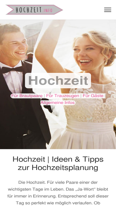 Ratgeber und Tipps für die Hochzeit. Für Brautpaare, Trauzeugen und Hochzeitsgäste. So wird jede Hochzeit zum einmaligen Fest.