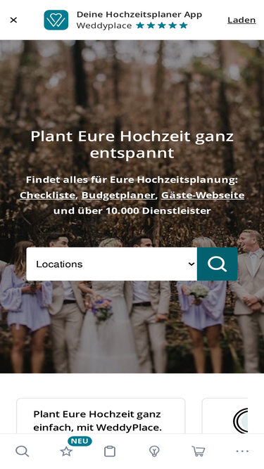 74%Hochzeit ❤ Ideen für Brautpaare » Dienstleister, Locations, Mode | Für Trauzeugen » Junggesellenabschied & Tipps | Für Gäste » Geschenke, Wünsche & Sprüche