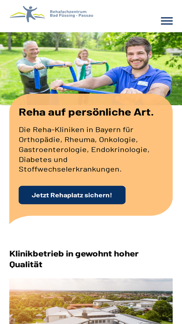 77%Reha-Kompetenz mal zwei: Das Rehafachzentrum Bad Füssing - Passau besteht aus zwei Reha-Kliniken in Bayern mit den Schwerpunkten Orthopädie und Onkologie.