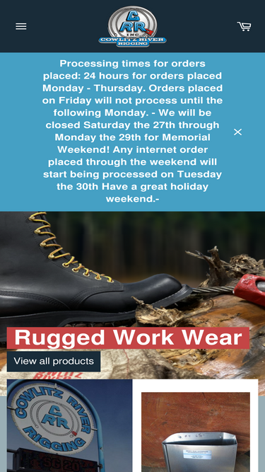82%Cowlitz River Rigging is a full service logging supply shop located in Longview, WA. We are stocked with over 19,000 square feet of logging tools and supplies.