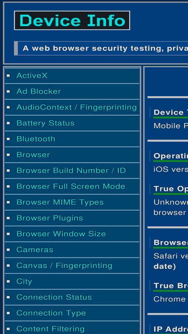 87%device info is a web browser security testing, privacy testing, and troubleshooting tool.