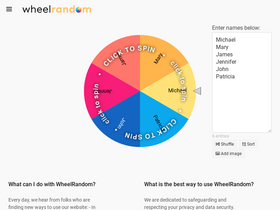 Enter names, spin wheel to pick a random winner. Customize look and feel, save and share wheels.