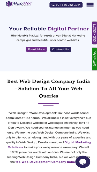 98%Contact Matebiz for all your web design and development needs. Our experts are ready to assist you with professional solutions. Get in touch today!