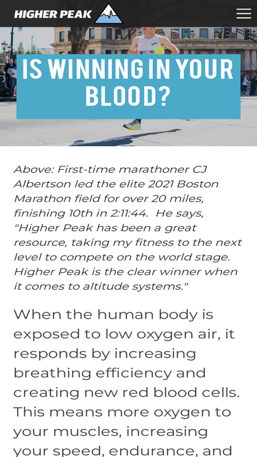 85%Higher Peak, the top-selling personal athletic altitude training system, builds speed and endurance with low-oxygen training masks and altitude tents.