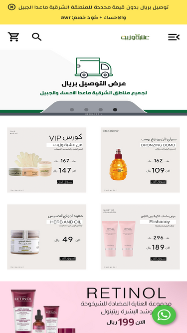95%عشبه وزيت الخيار الاول للباحثين و المهتمين بالجمال و العناية و الرشاقة نهدف الى التميز بجوده الخدمات المقدّمة بالاظافة الى تقديم استشارات مجانية على يد كادر مختص و احترافي في الجمال يوجد شحن لجميع مناطق الخليج