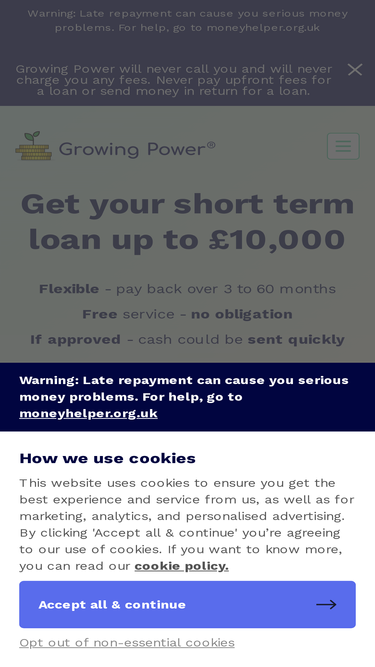 57%find a short term loan online at growing power. super quick application form, and if approved, your money could be sent the same day.