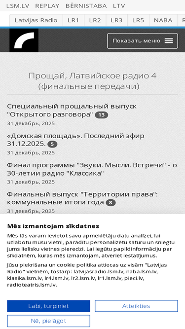 84%31 декабря Латвийское Радио 4 завершает свое вещание в привычном радиоформате. Ведущая Ольга Князева пригласила в студию тех, кто руководил каналом долгие годы, чтобы подвести итоги и попрощаться со студией.