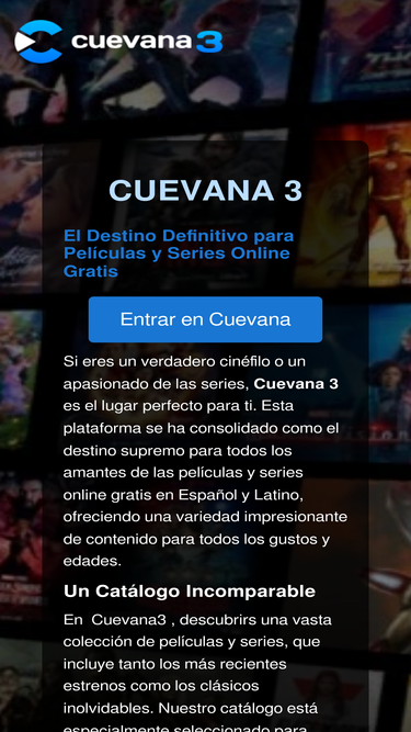 94%Cuevana 3 es tu sitio ideal para ver películas, series y animes online gratis en HD. Encuentra estrenos, clásicos y mucho más en un solo lugar.