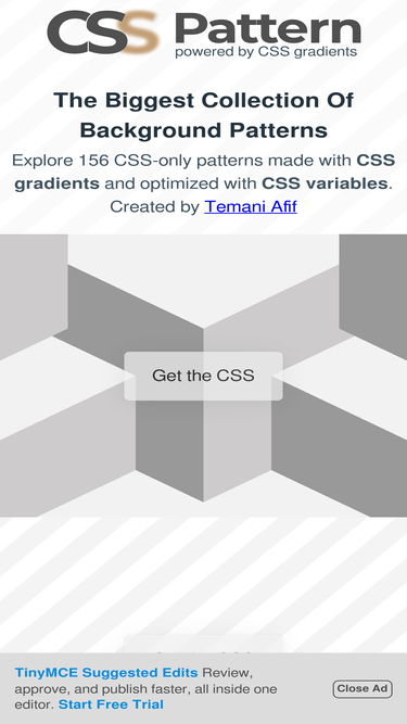 94%A collection of 100+ background patterns powered by CSS gradients and modern CSS. All the best CSS Patterns are here! Look no further.