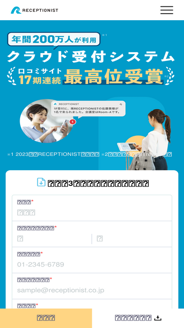 66%全国400万人が利用するクラウド受付システム「RECEPTIONIST」は、オフィス・工場・ビル・店舗の受付をiPadで無人化するクラウドサービスです。QRコードで簡単受付、英語対応、来客履歴管理を自動化。Teams、Slack、Chatwork、GoogleChatと連携し、効率的な受付業務を実現します。