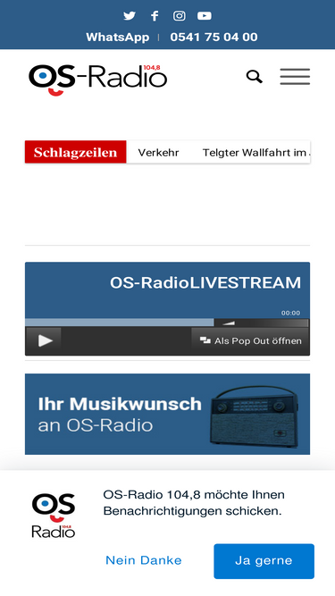 88%OS-Radio 104,8 der Radiosender für die Stadt und Region Osnabrück. Aktuell - Regional - Bürgerfunksendungen