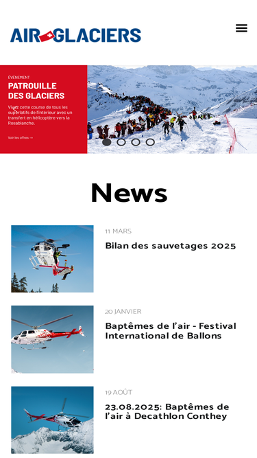 87%air glaciers est une compagnie aérienne suisse basée à sion, collombey, leysin, saanen, lauterbrunnen et gampel. ses missions : le sauvetage en montagne, transport héliporté, l'héliski, les vols de plaisance, le traitements viticoles et agricoles, et vols taxi. l'école de vol et le service de maintenance complètent l'offre.