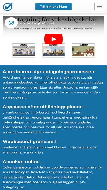 71%från ansökan till färdig klasslista. yh-antagning.se är webbtjänsten som hjälper skolor att spara tid, öka kvaliteten och följa en rättssäker antagningsprocess.