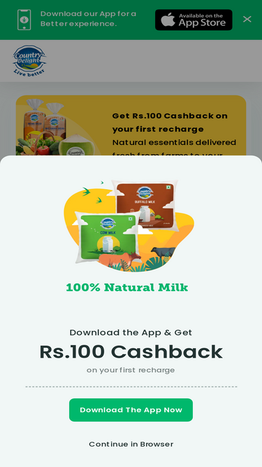 100%Country Delight delivers farm-fresh cow and buffalo milk to your doorstep within a few hours of milking. Order now through the app and get pure dairy and bakery products every day. Available in Delhi-NCR, Bangalore, Mumbai, Pune!