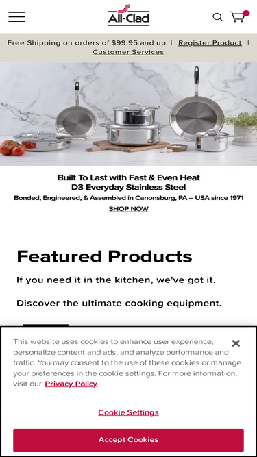 82%The largest cooking surface in the All-Clad family, this 6-quart Stainless Steel Pan with Lid has straight sides for a wide variety of foods and cooking techniques. Comfortable side handles are compact for storage and simplify the transition to and from the oven.Fast and Even Heat - D3 tri-ply is fully bonded to the rim for professional performance & durability. The high quality 18/10 stainless steel surface sears to perfection and is ideal to deglaze for pan sauces.Design You Will Love - D3 has a professionally polished stainless steel finish. Our classic, double riveted stainless steel handles ensure a secure grip.Built to Last - Trusted by generations of chefs and backed by All-Clad's Limited Lifetime Warranty. Our cookware is oven & broiler safe up to 600°F and compatible with any stovetop, including induction. Handwashing is recommended.Bonded, Engineered, & Assembled in Canonsburg, PA - USA Since 1971.