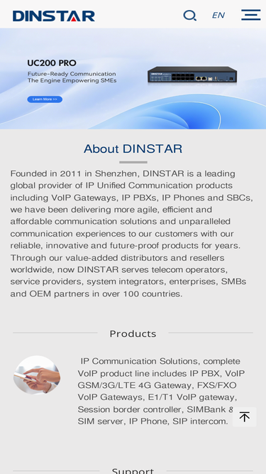 82%dinstar is a leading provider of ip communication products and solutions, including voip gateways, ip pbxs, sbcs, ip phones and sip intercoms.