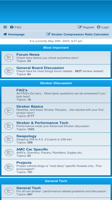 79%forum news, general board discussion, faq's, stroker basics, stroker & performance tech, swapology, amc car specific, projects, general tech, electrical, the pub, test