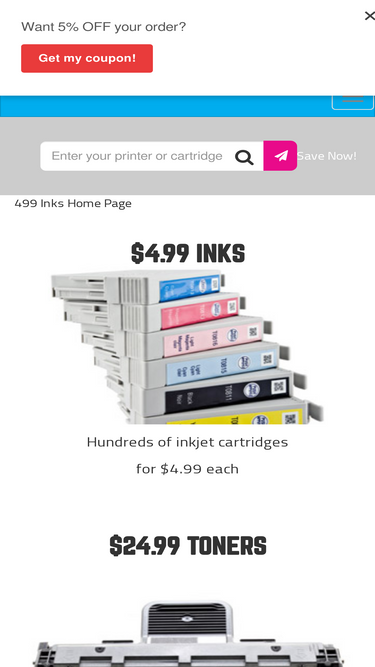 85%cheap inkjet and toner cartridges at 499 inks. all discount inks only $4.99 for brother, canon, epson, hp, dell, lexmark and kodak ink cartridges