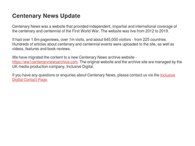 greatwar.nl es el cuarto sitio web más similar a 1914-1918-online.net y centenarynews.com es el quinto. greatwar.nl y centenarynews.com recibieron 12.2K y -- visitas en noviembre 2025, respectivamente.