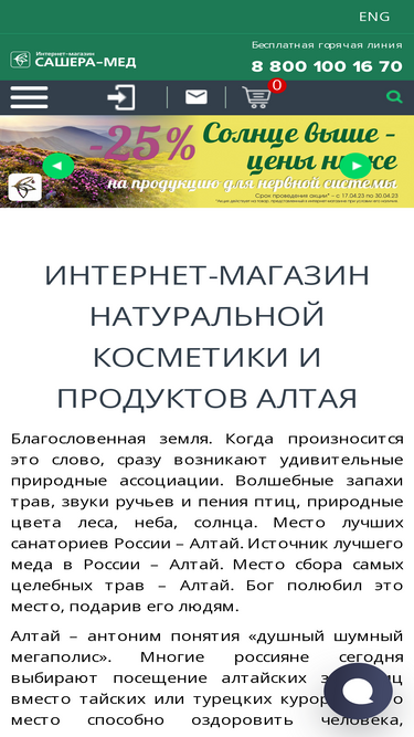 73%в нашем интернет-магазине «сашера-мед» представлены натуральные препараты и косметика из алтая. продукция для красоты и здоровья. обращайтесь по бесплатному телефону: 8-800-100-16-70